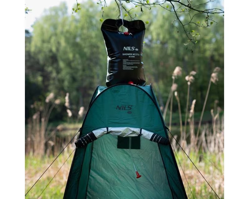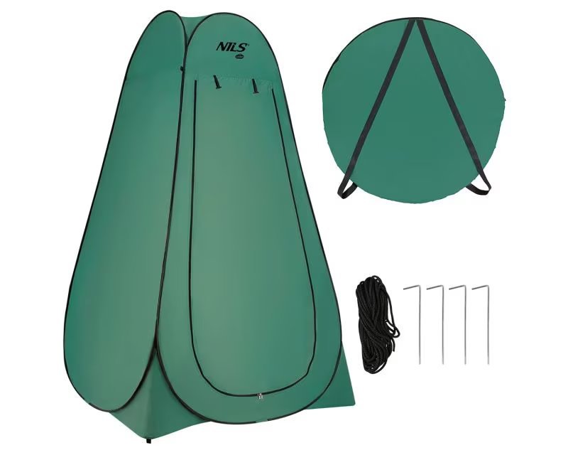 Dušas palapinė, persirengimo kambarys, Nils Camp NC1706 pagamintas iš 190T poliesterio, pasižyminčiu atsparumu vandeniui ir atsparumu dilimui.