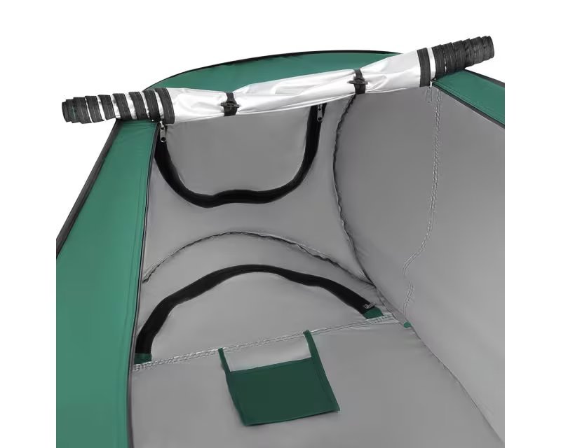 Dušo palapinėje yra vidinė kišenė, leidžianti saugiai laikyti smulkesnius daiktus. Įmontuotas dirželis suteikia galimybę pakabinti drabužius ar rankšluostį.