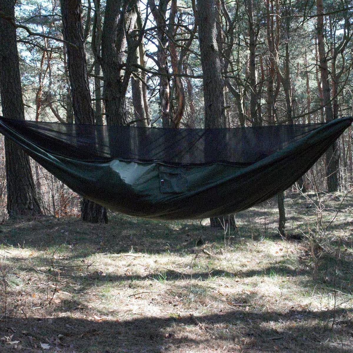 Lengvas žygio hamakas su tinkleliu nuo uodų, kurio matmenys 350 x 150 cm. Ilgas variantas pasižymi ilgesniu ilgiu nei klasikinis V2 ir užtikrina patogesnį poilsį.