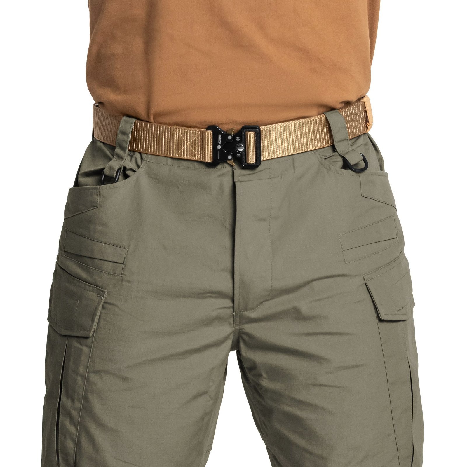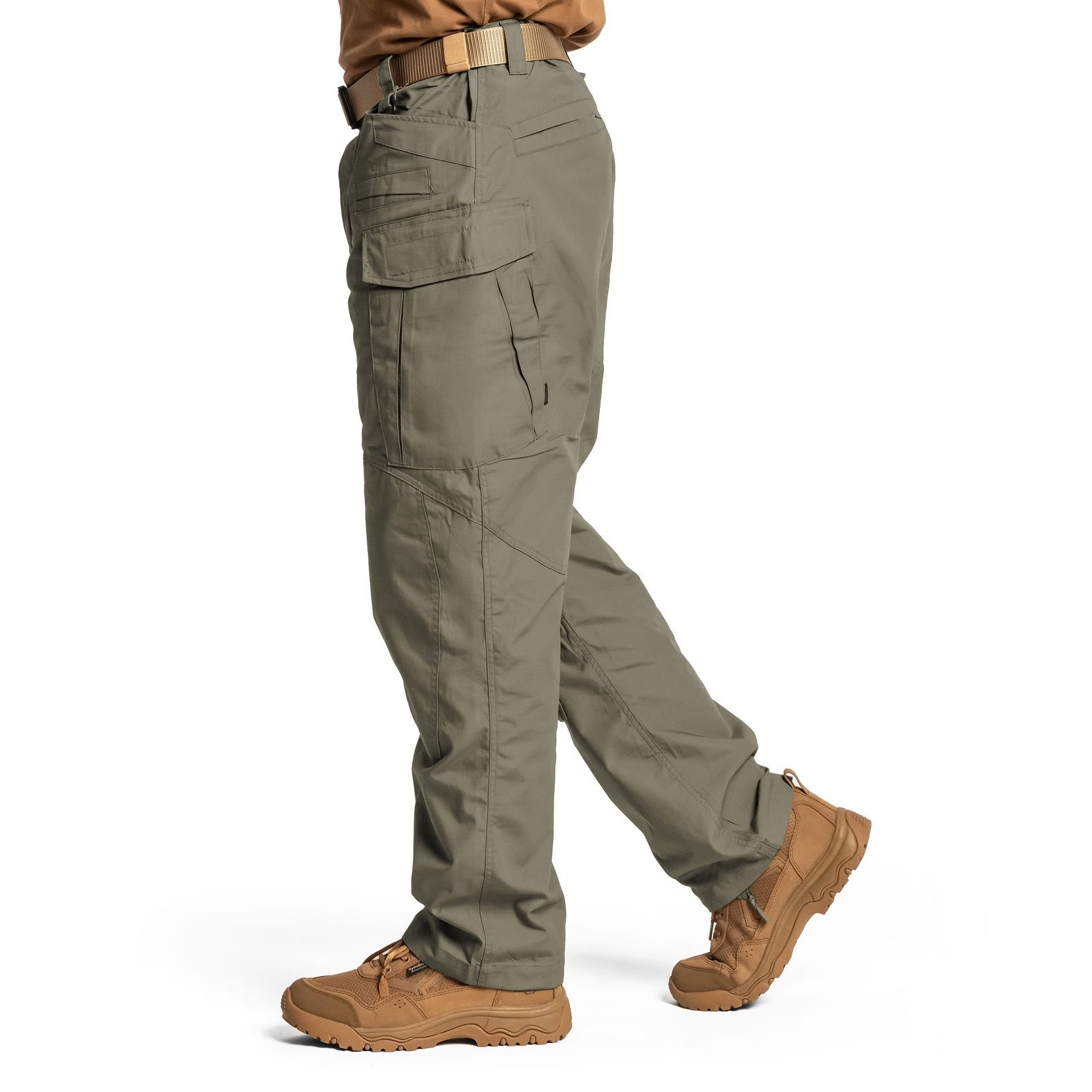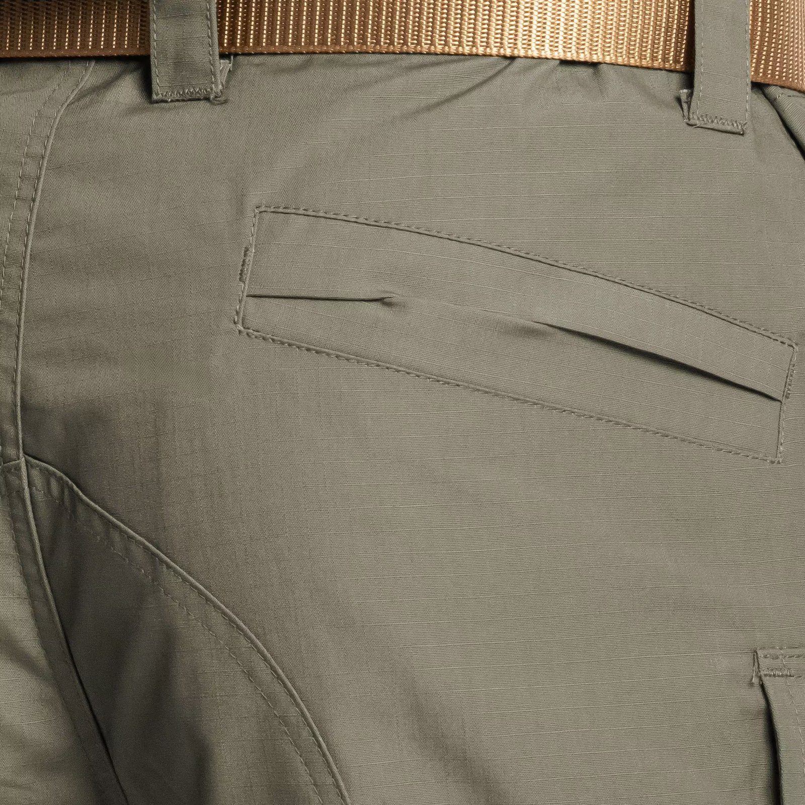 Kelnės pagamintos iš aukštos kokybės PoliCotton RipStop (60% medvilnės, 40% poliesterio) medžiagos, kuri pasižymi dideliu atsparumu trinčiai ir plyšimui, taip pat yra lengvesnės ir greičiau džiūsta nei 100% medvilnė.