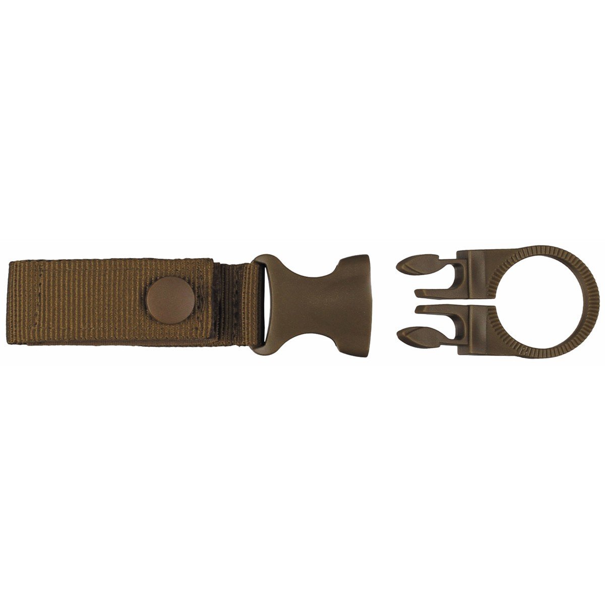 MOLLE butelio laikiklis – tinka labiausiai paplitusiems plastikiniams gėrimų buteliams. MOLLE adapteris su „Velcro” ir prispaudžiamu segtuku.