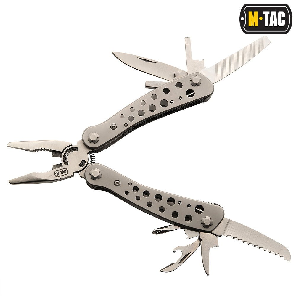 Kokybiškas, patikimas ir palyginti nebrangus „M-Tac” prekės ženklo multifunkcinis įrankis. Rinkinį sudaro būtiniausių ir geidžiamiausių įrankių rinkinys kasdieniam naudojimui.