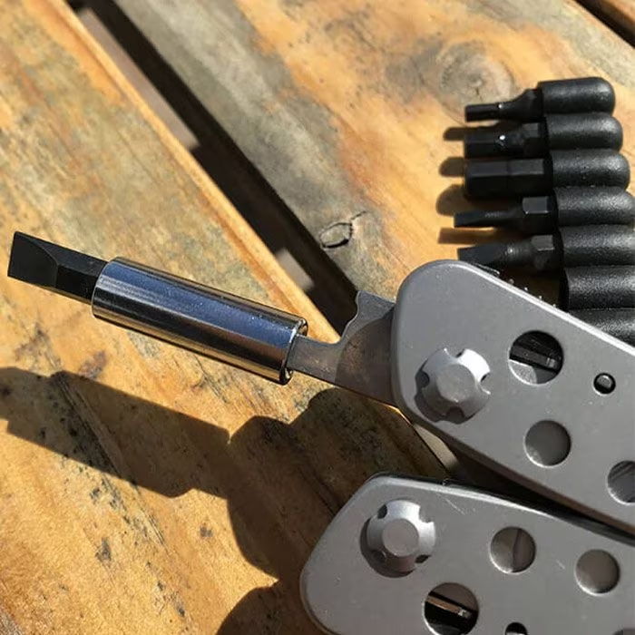 Replės ir vielos kirpimo įrankiai, atsuktuvai, pjūklai, skardinių ir butelių atidarytuvai ir net pjūklelis – visa tai viename kompaktiškame ir patogiame rinkinyje, kuris uždarytas beveik neužima vietos.