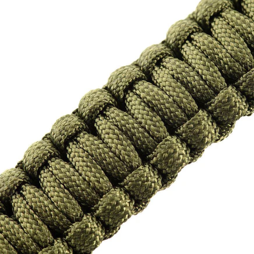 Išskleidus apyrankę, gausite net 3 metrų ilgio paracord virvę, kurios maksimali statinė apkrova siekia iki 200 kg. Paracord išsiskiria savo atsparumu dilimui, frikcijai ir nešvarumams. Be to, virvė greitai džiūsta po sąlyčio su vandeniu, todėl ji puikiai tinka naudojimui bet kokiomis oro sąlygomis.