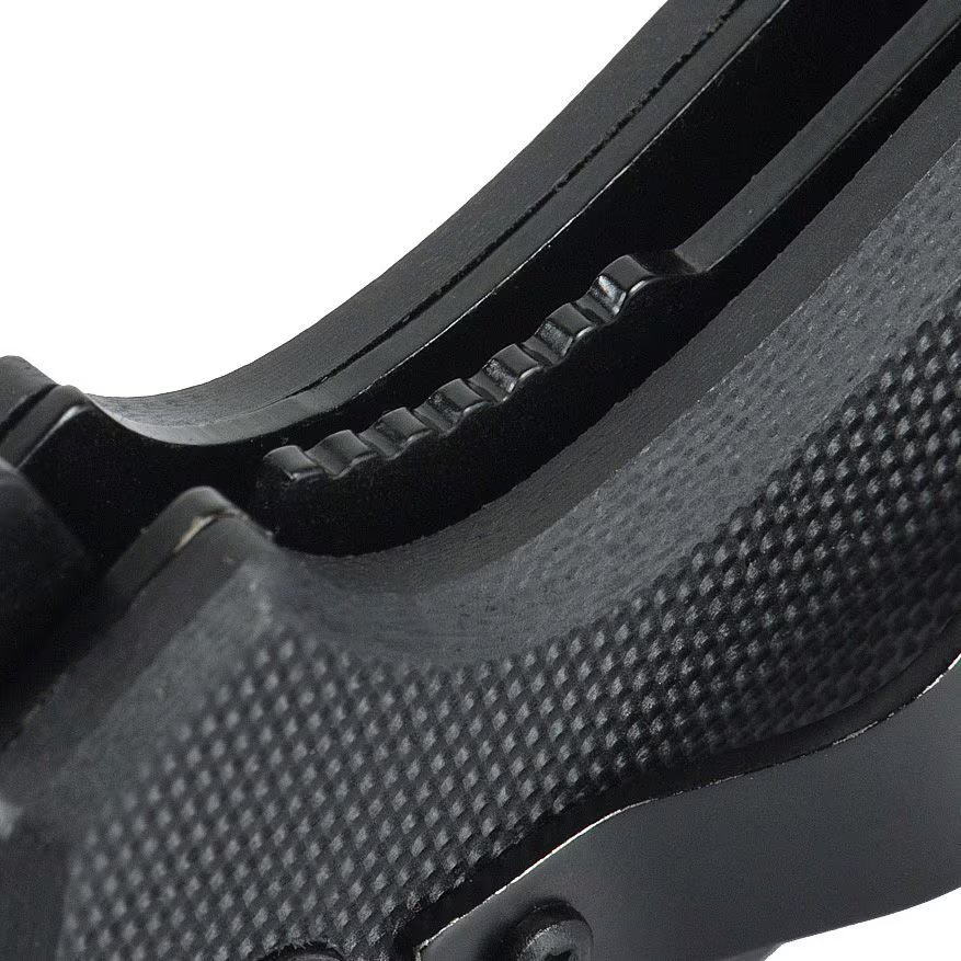 Tvirta aliuminio rankena turi G10 kompozitines rankenas, neslidžias ir briaunotas.