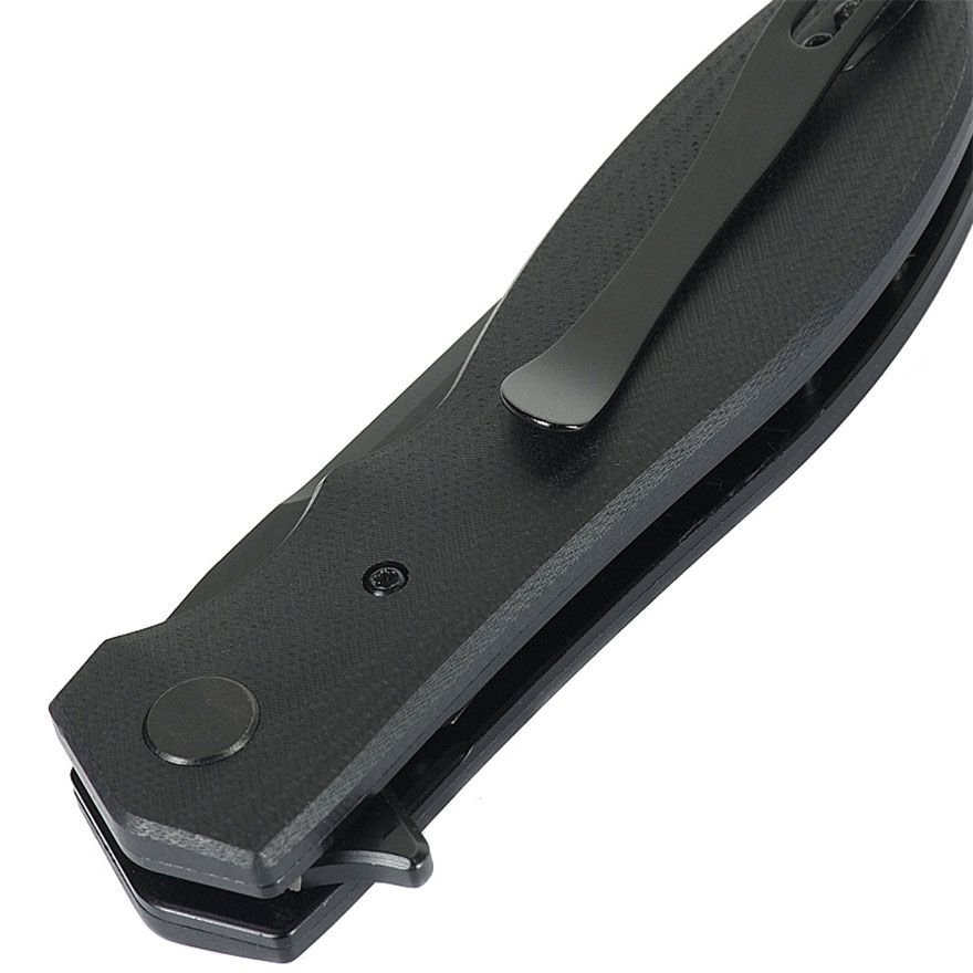Peilis su Clip-Point profiliu. Ašmenys pagaminti iš 5Cr15MoV nerūdijančio plieno, pasižyminčio dideliu atsparumu korozijai ir lengvu galandimu. Ašmenų paviršius padengtas matinės juodos spalvos danga.