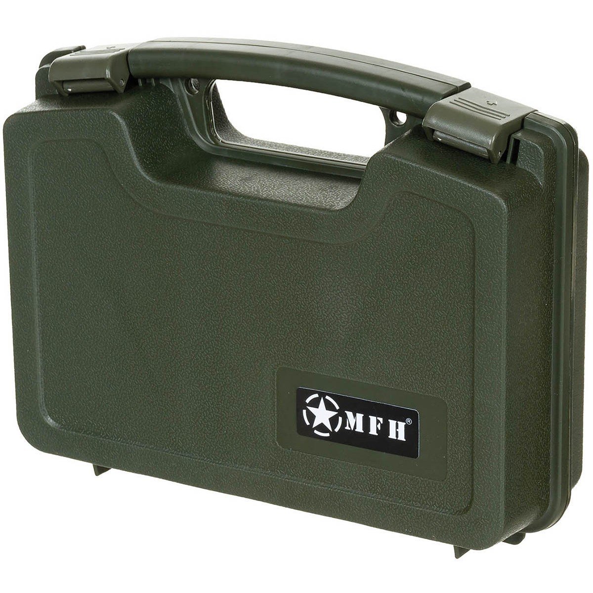 Mažas plastikinis pistoleto dėklas su paminkštinimu ir užrakinimu. Atsparus smūgiams.