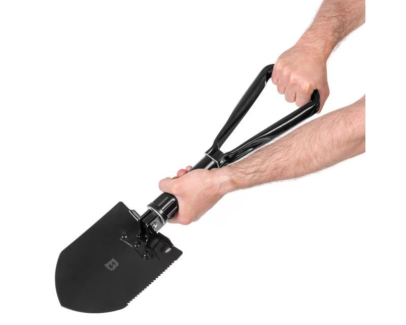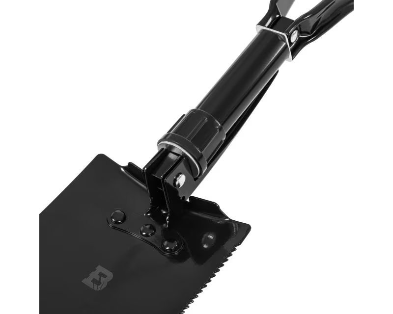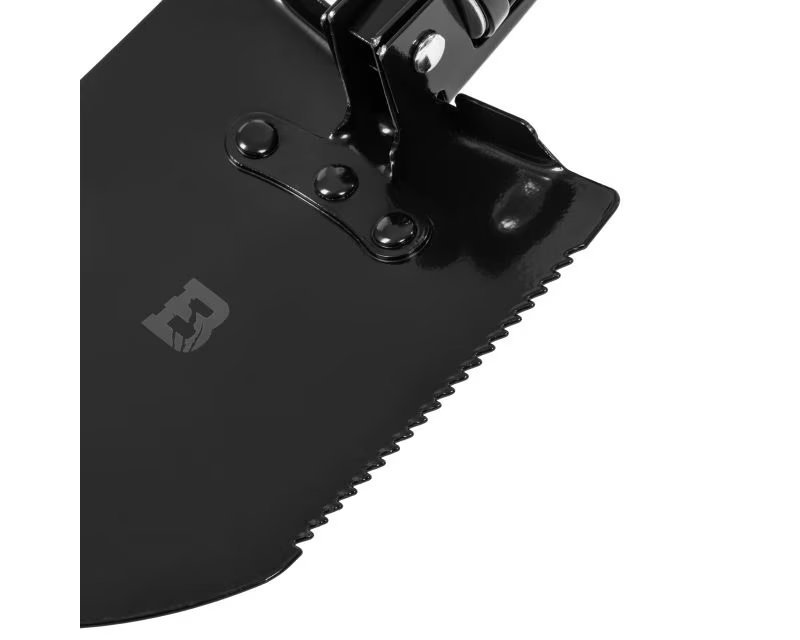 Sulankstomas kastuvas Badger Outdoor pagamintas iš patvaraus plieno, padengtas juoda apsaugine danga.