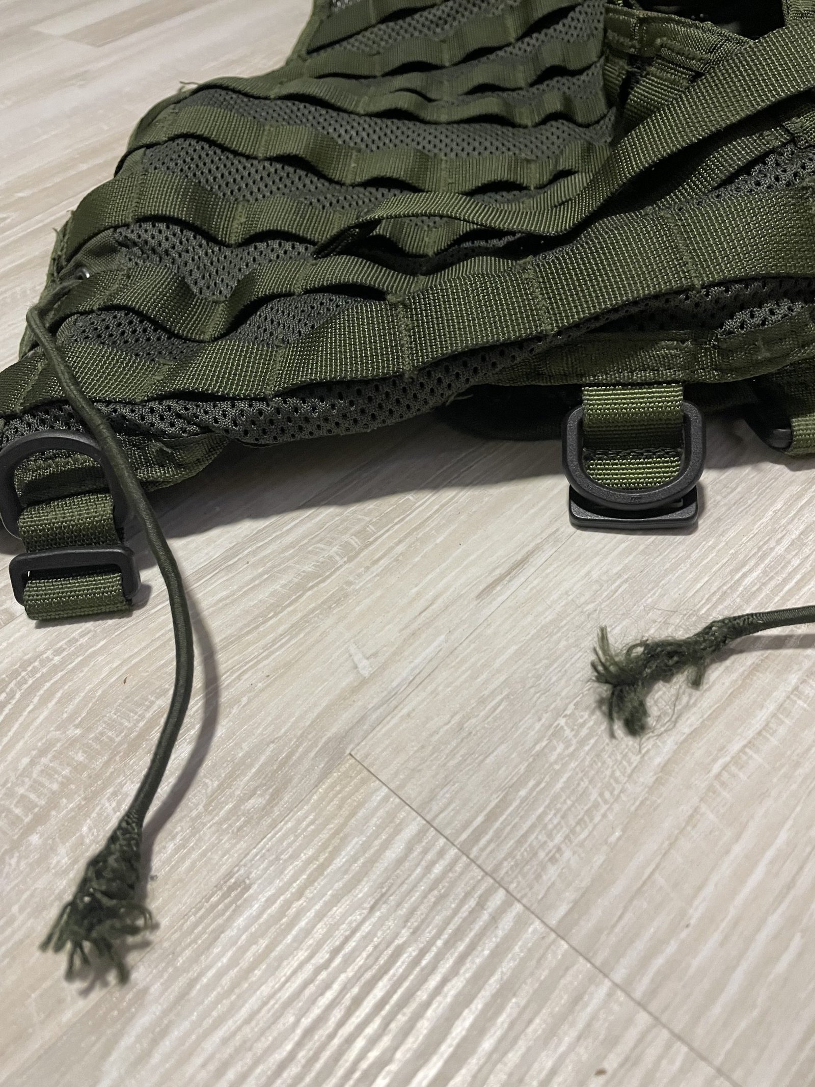 Taktinė liemenė iš tvirtos tinklinės medžiagos. NAUDOTA