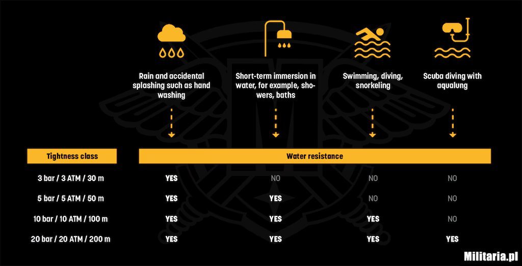 Daugiafunkcinis taktinis laikrodis M-Tac Adventure turi tvirtą ir patvarų korpusą iš polikarbonato + patvarų nerūdijančiojo plieno rėmelį. Stiklelis pagamintas iš organinio polikarbonato, kuris atsparus įbrėžimams ir įskilimams – atsparumas vandeniui 3 ATM.